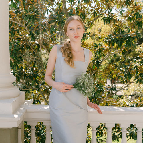 Our Beckett Dress is a customer favorite. Featuring wide straps, princess seams, and a slightly scooped neckline, this style is a modern classic. Shown here with the Brunch Skirt.