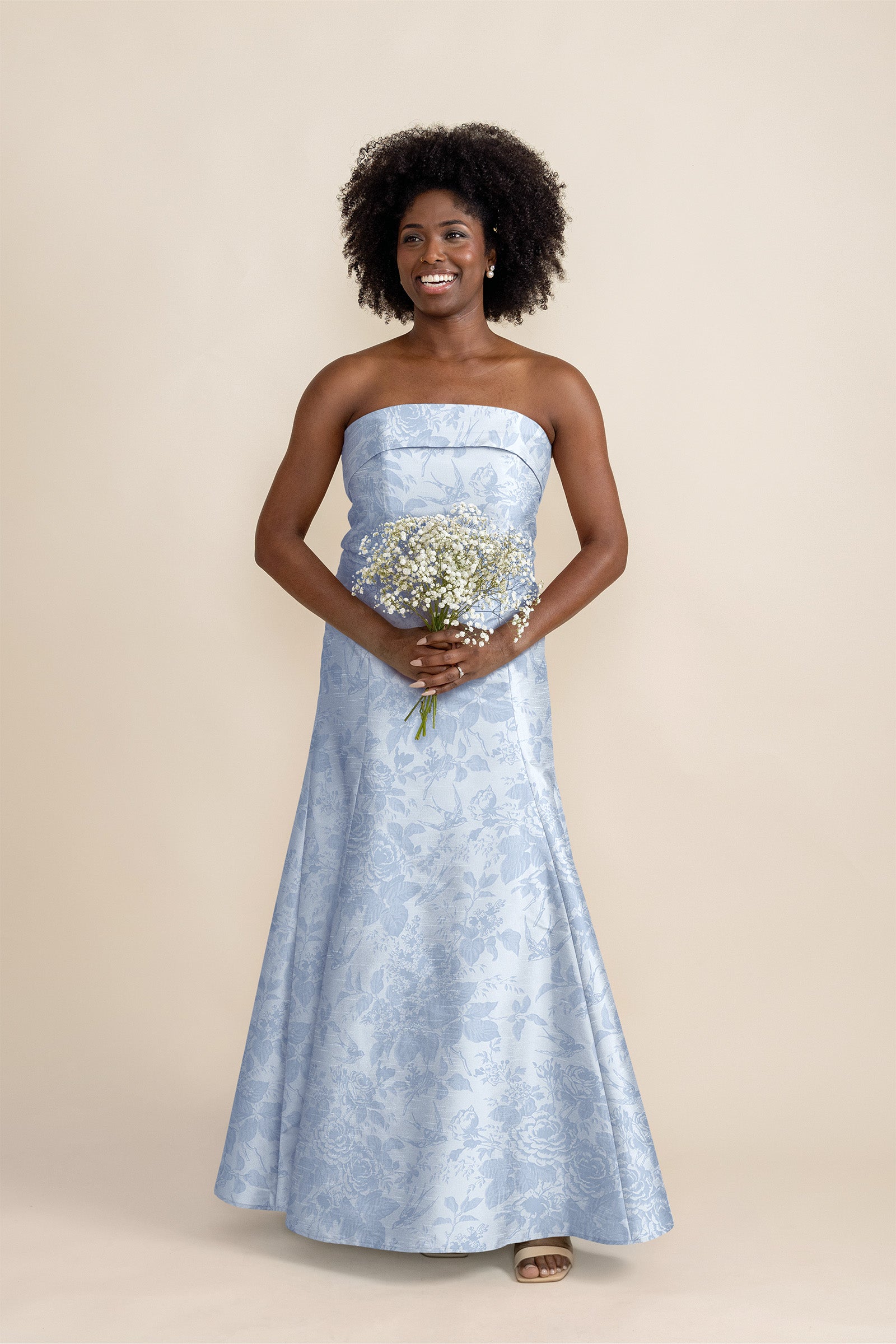 The Eva can be paired with any of our available skirt styles & lengths. Customize yours using our Design your Dress Tool to explore options.
