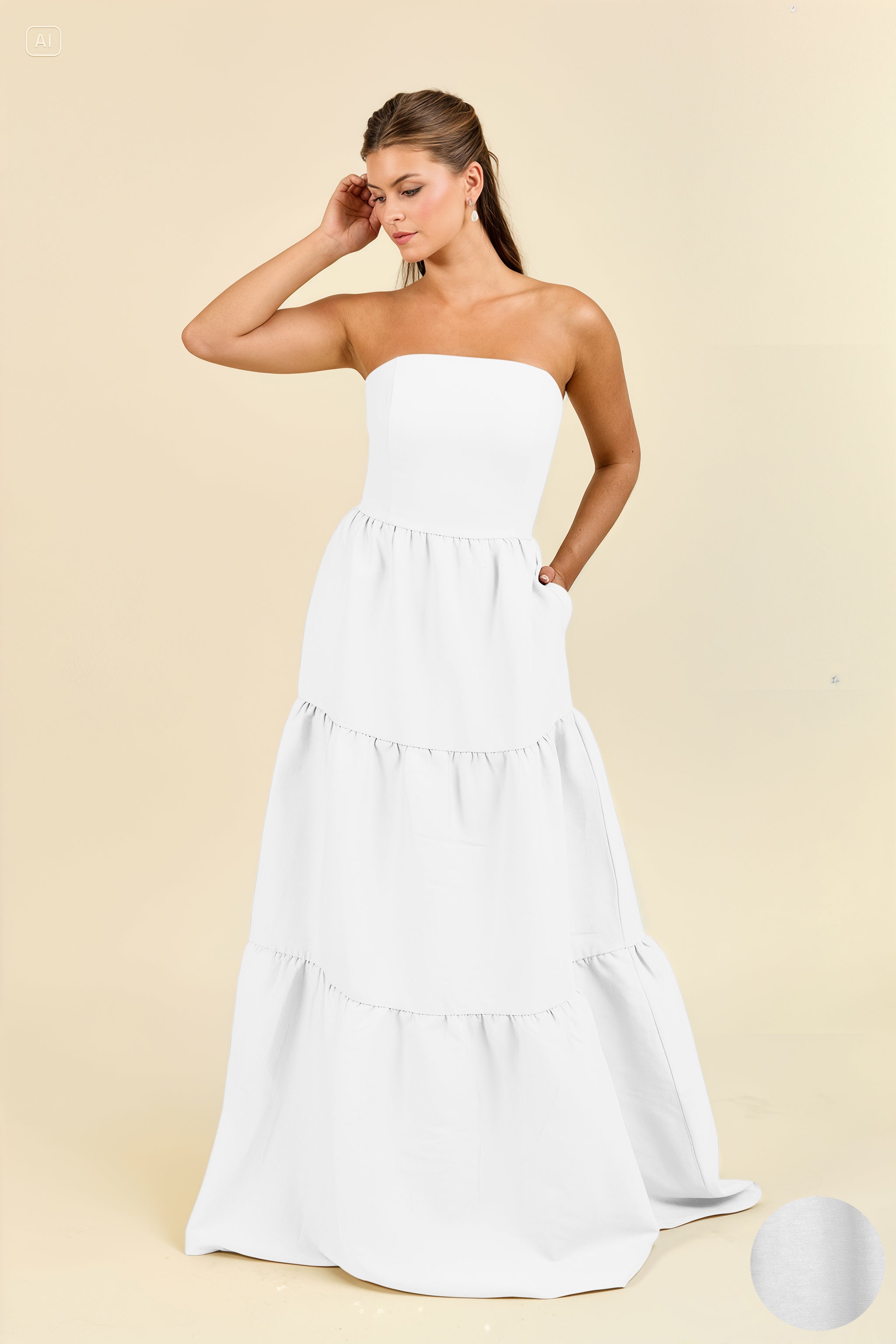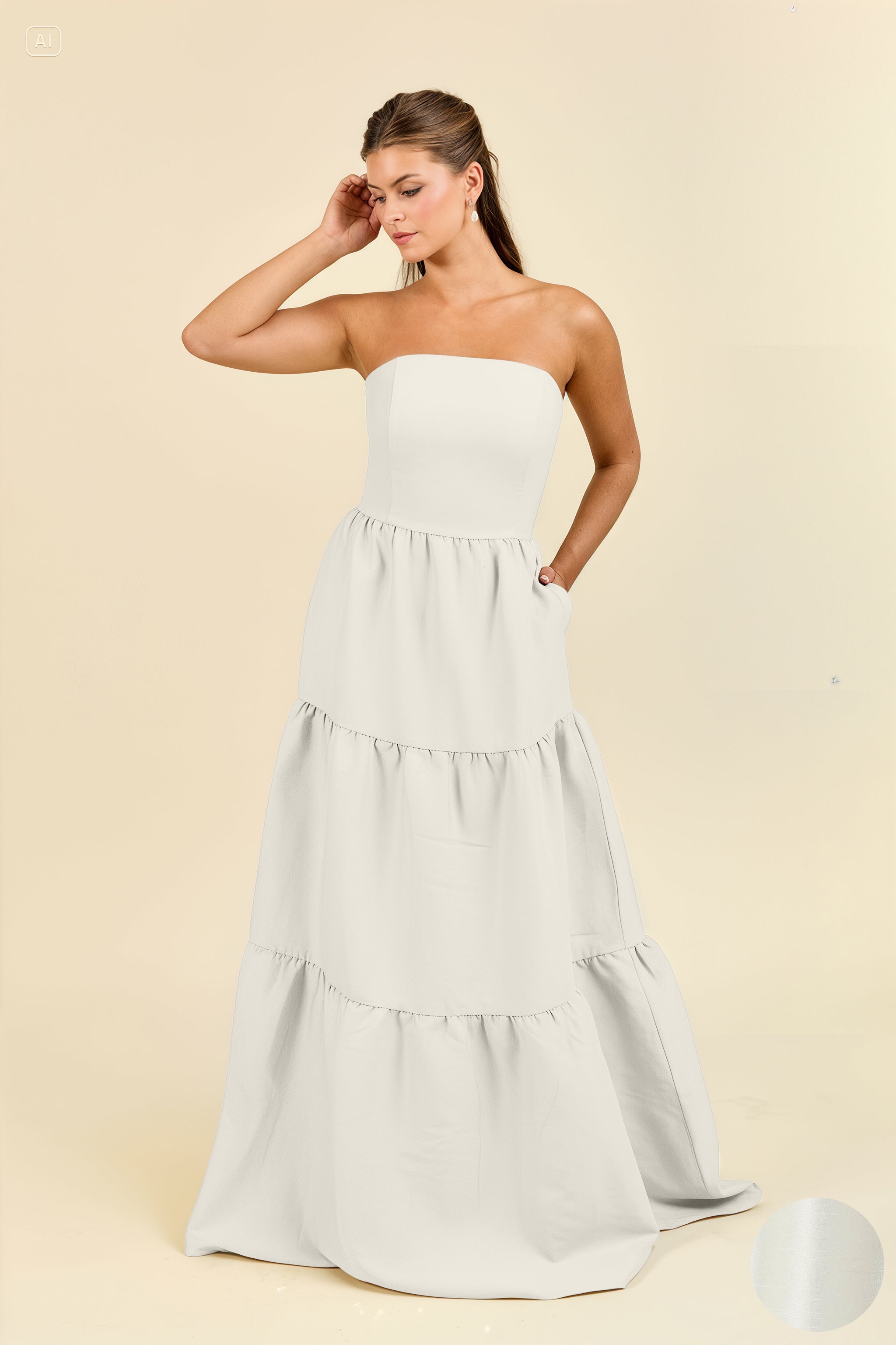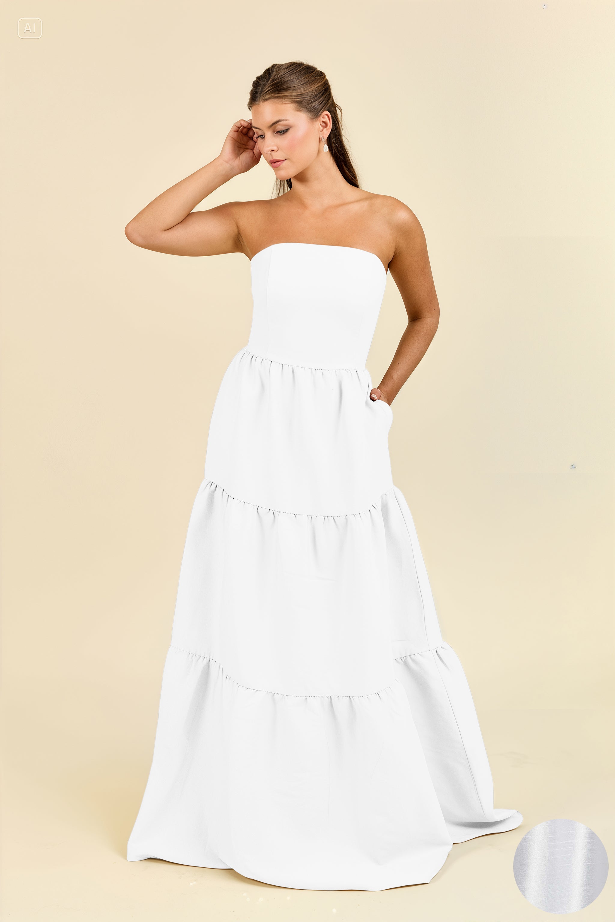 The Hannah can be paired with any of our available skirt styles & lengths. Customize yours using our Design your Dress Tool to explore options.