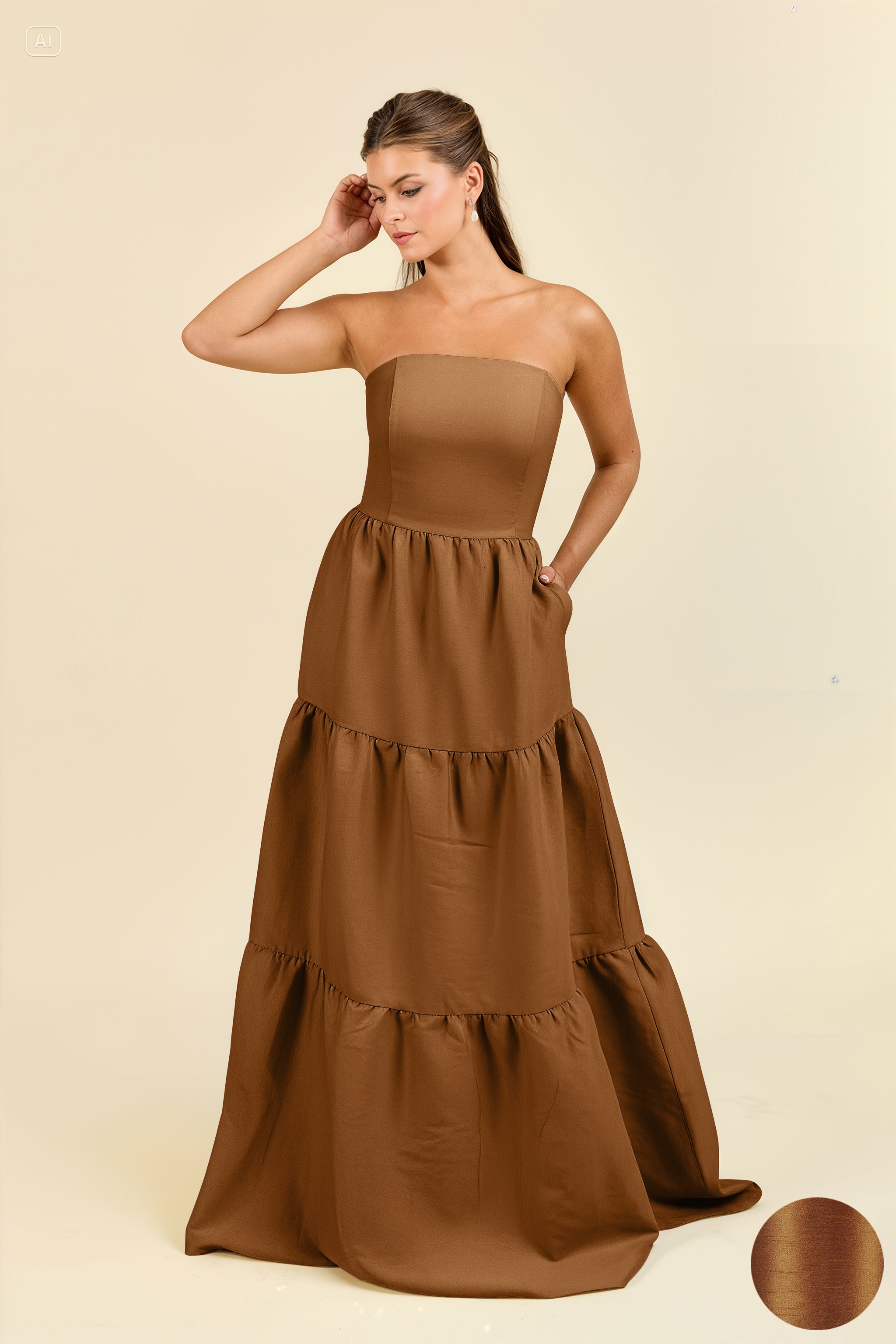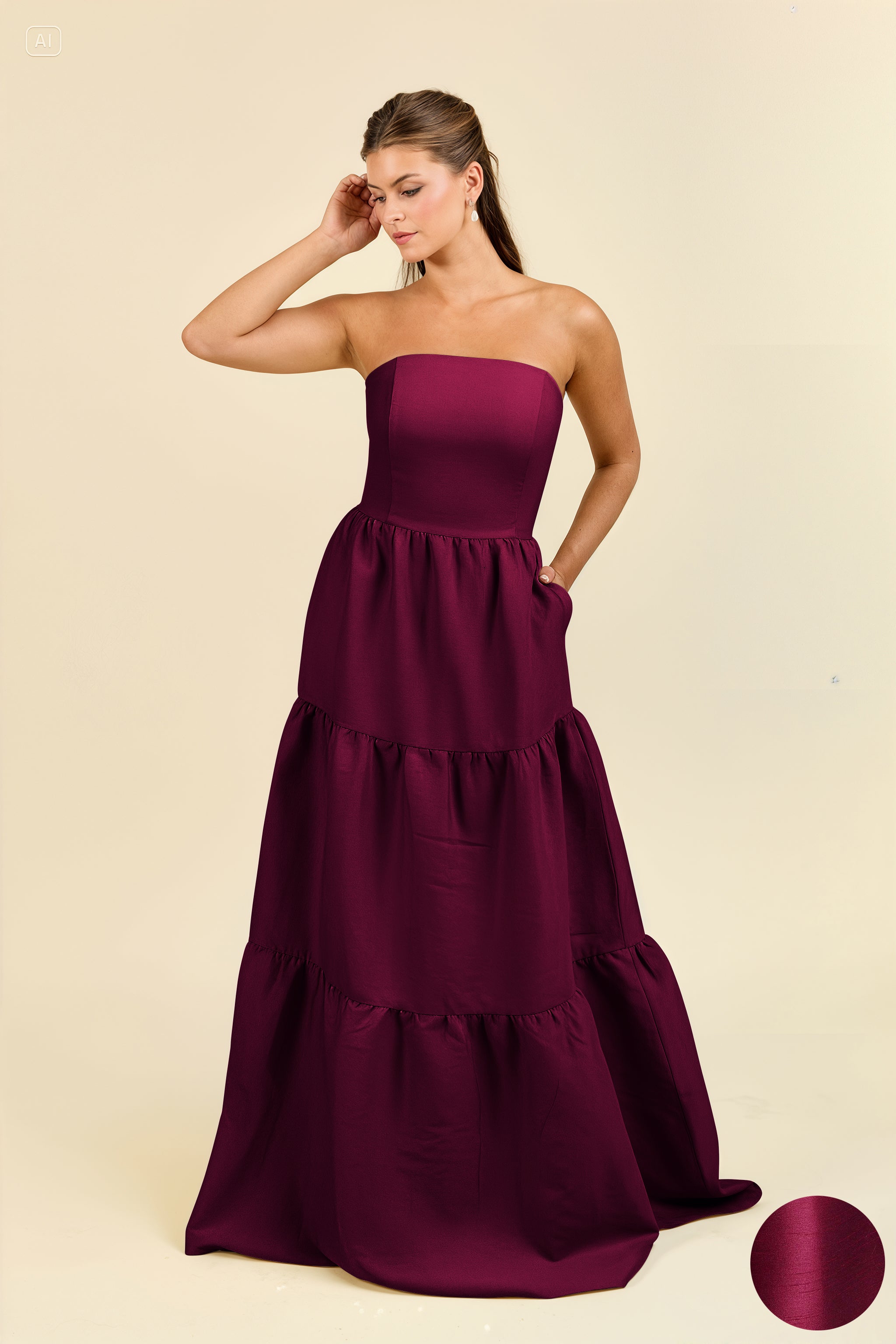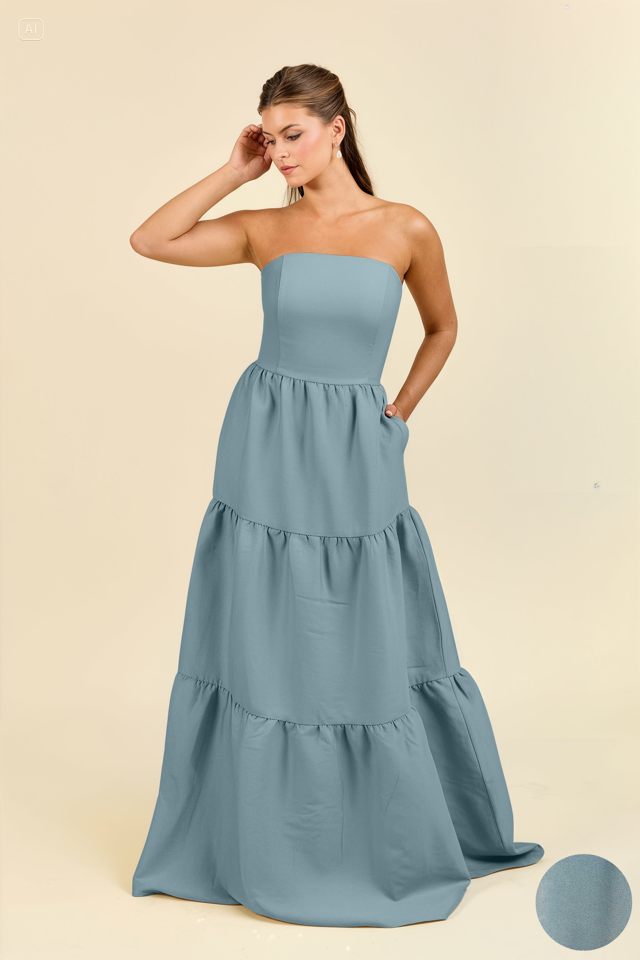 The Hannah can be paired with any of our available skirt styles & lengths. Customize yours using our Design your Dress Tool to explore options.