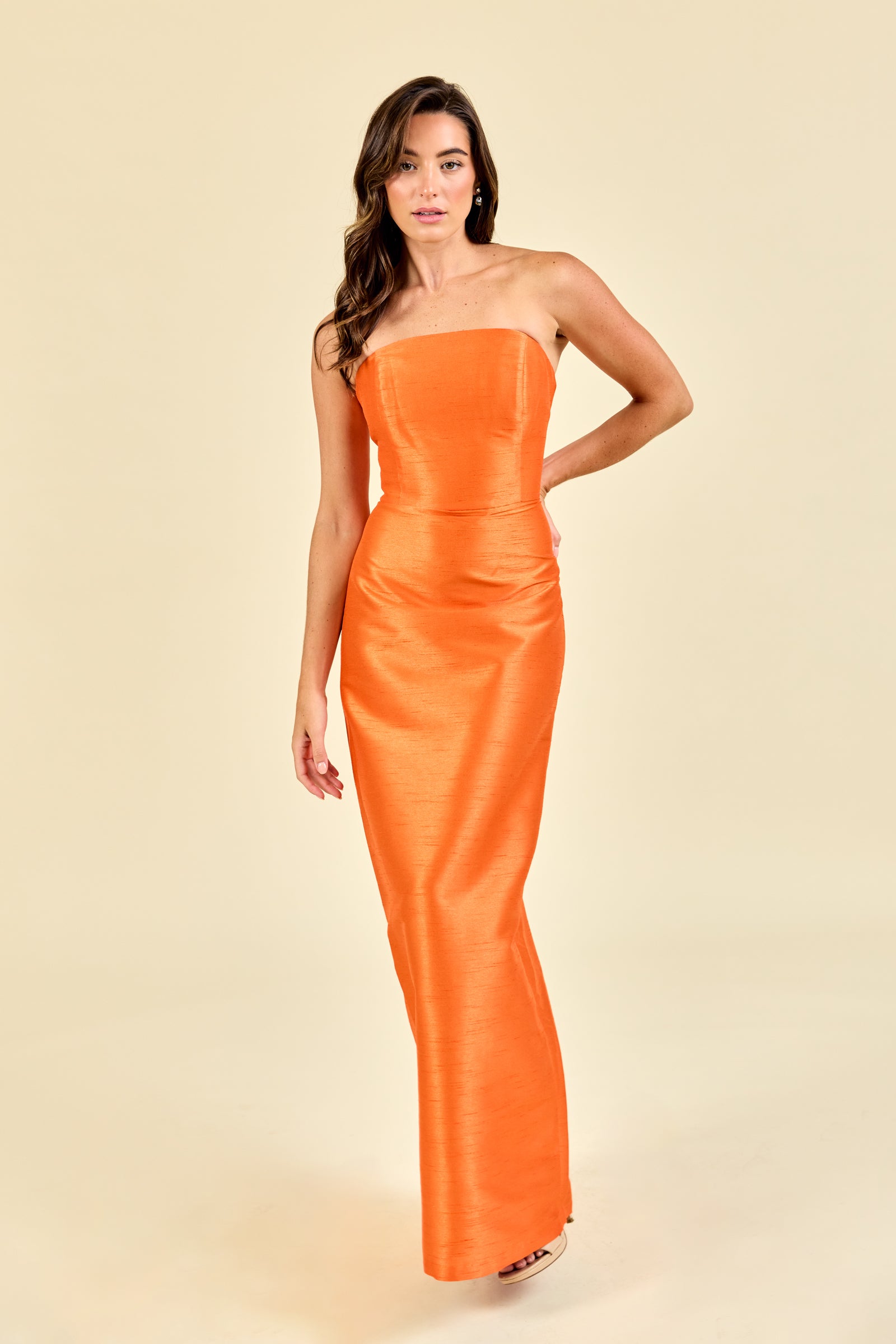 We love the sleek simplicity of our Hannah Dress. Shown here with our Trumpet Skirt, photographed in Blush Bengaline.