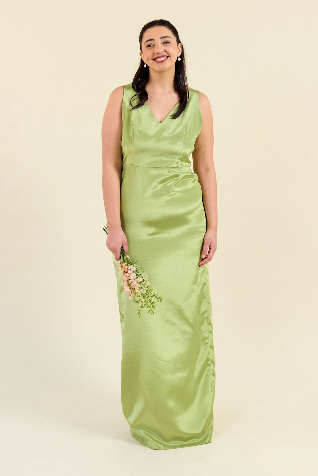 Our Harper Dress is a customer fave. This flattering V- neck is an easy fit and perfect for any event type. Shown with our Trumpet Skirt. Photographed in Fern Bengaline.