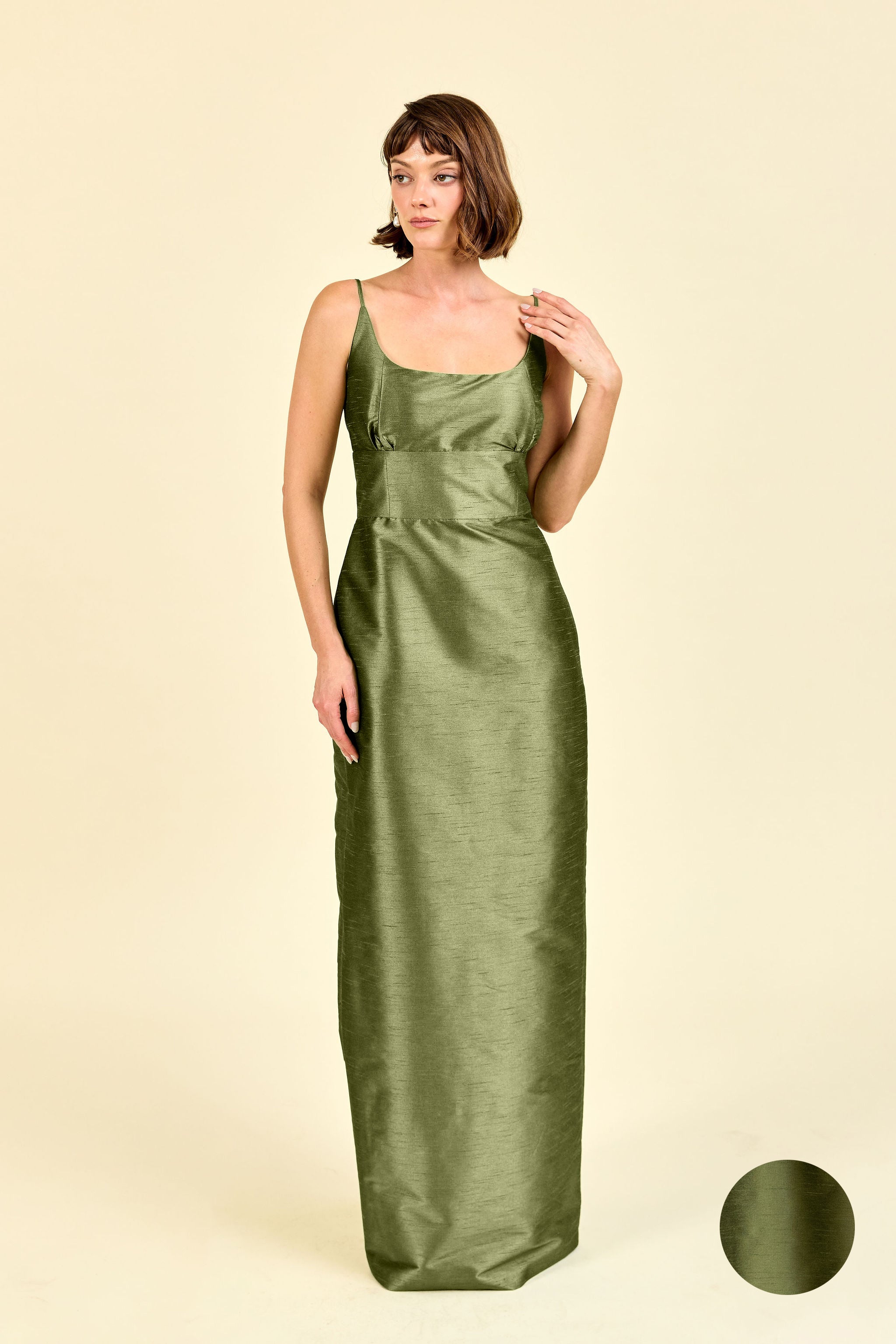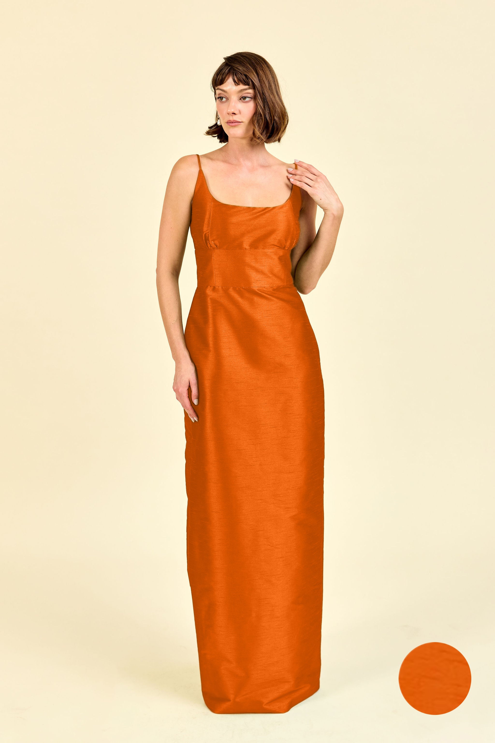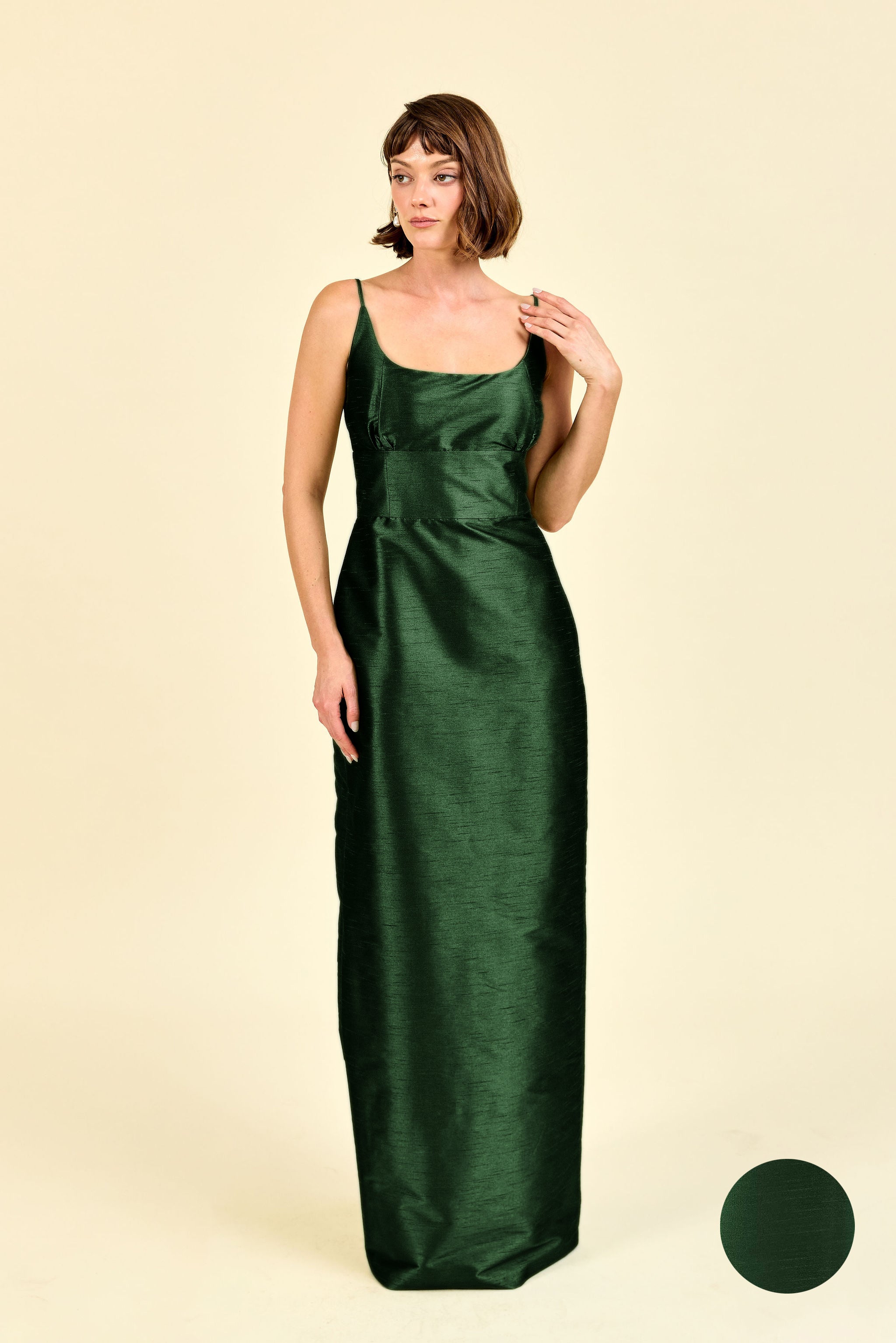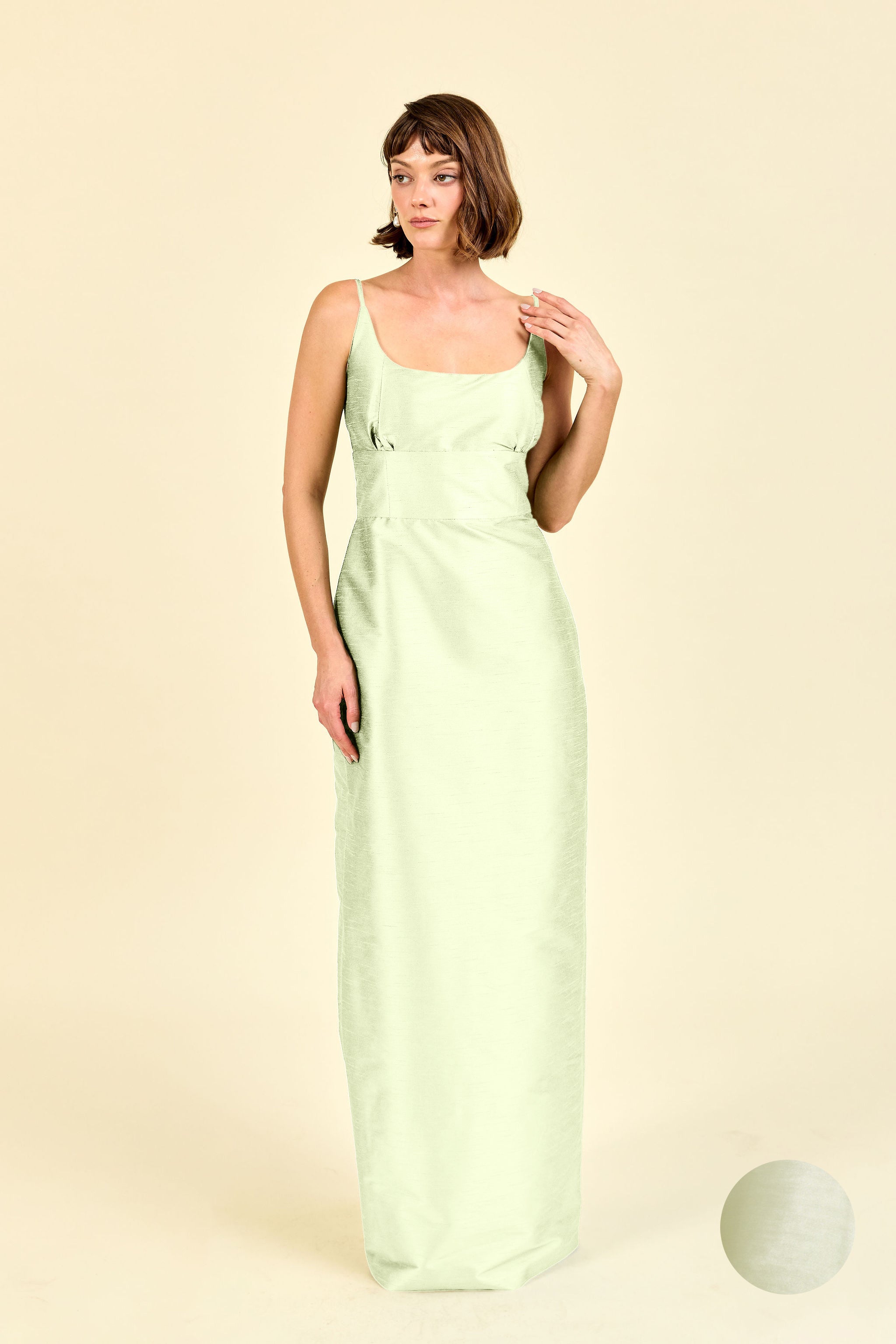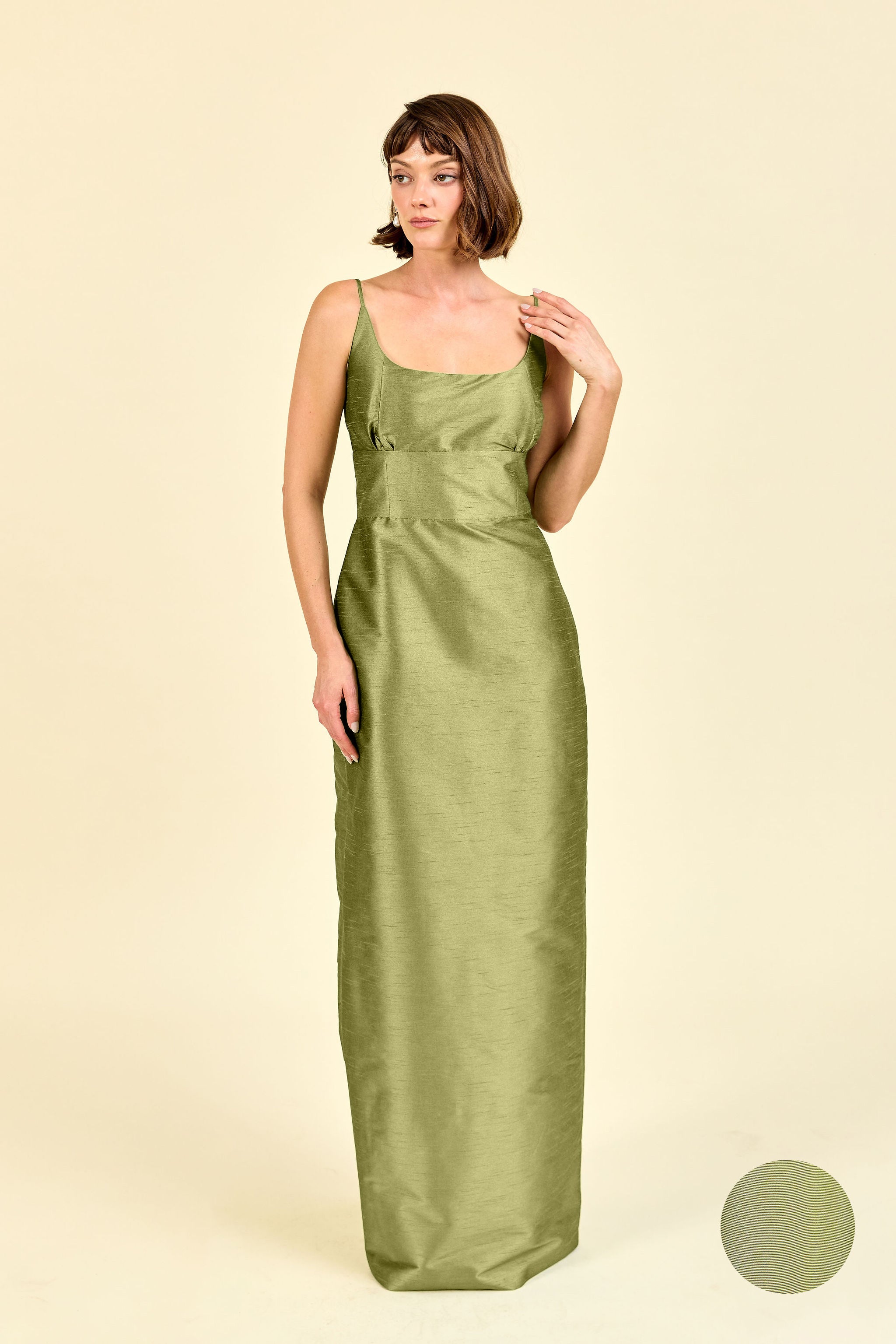 The Jane Dress is a feminine, scoop neck style with delicate adjustable spaghetti straps and a flattering wide waistband. A customer fave.