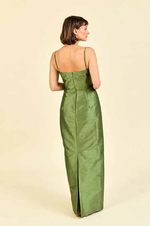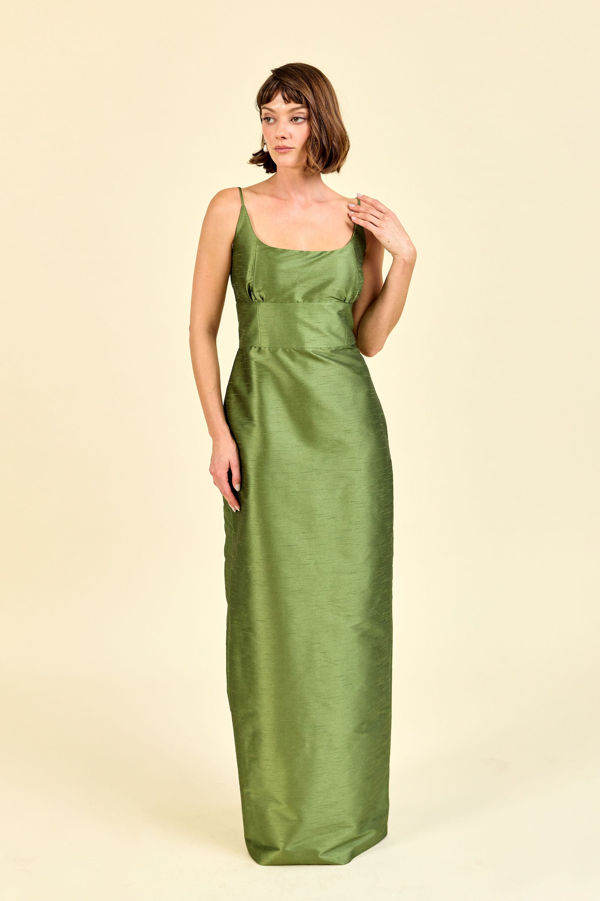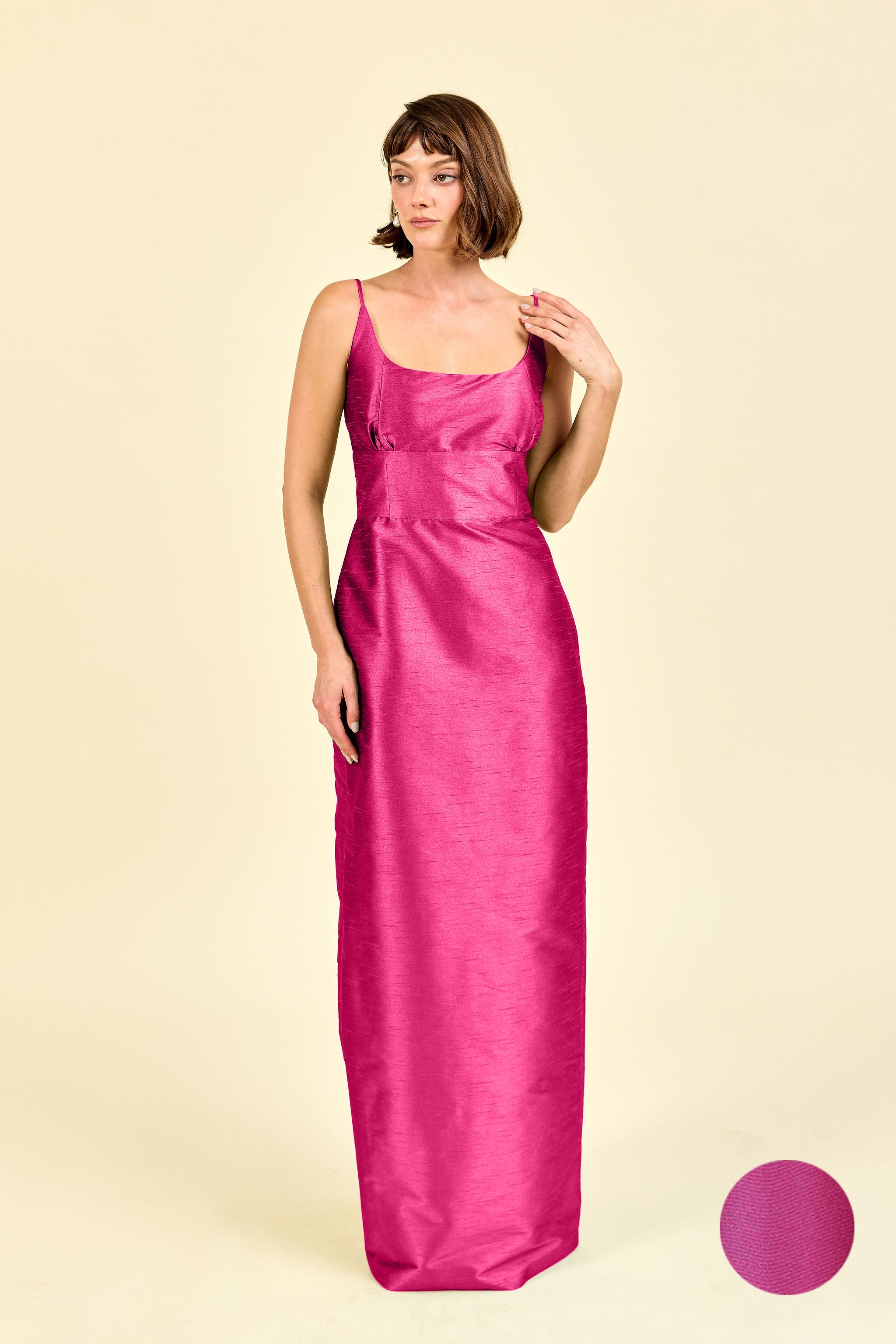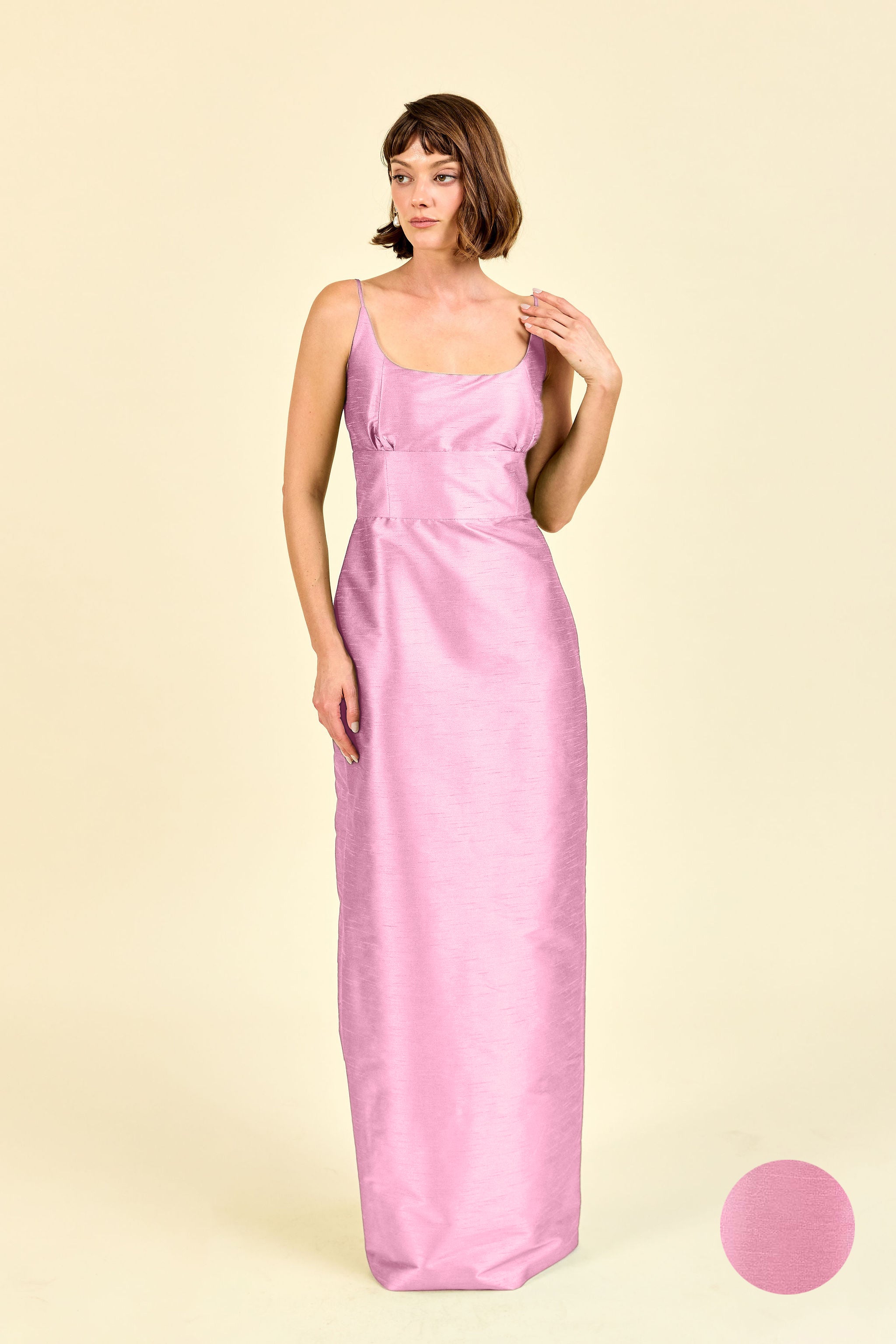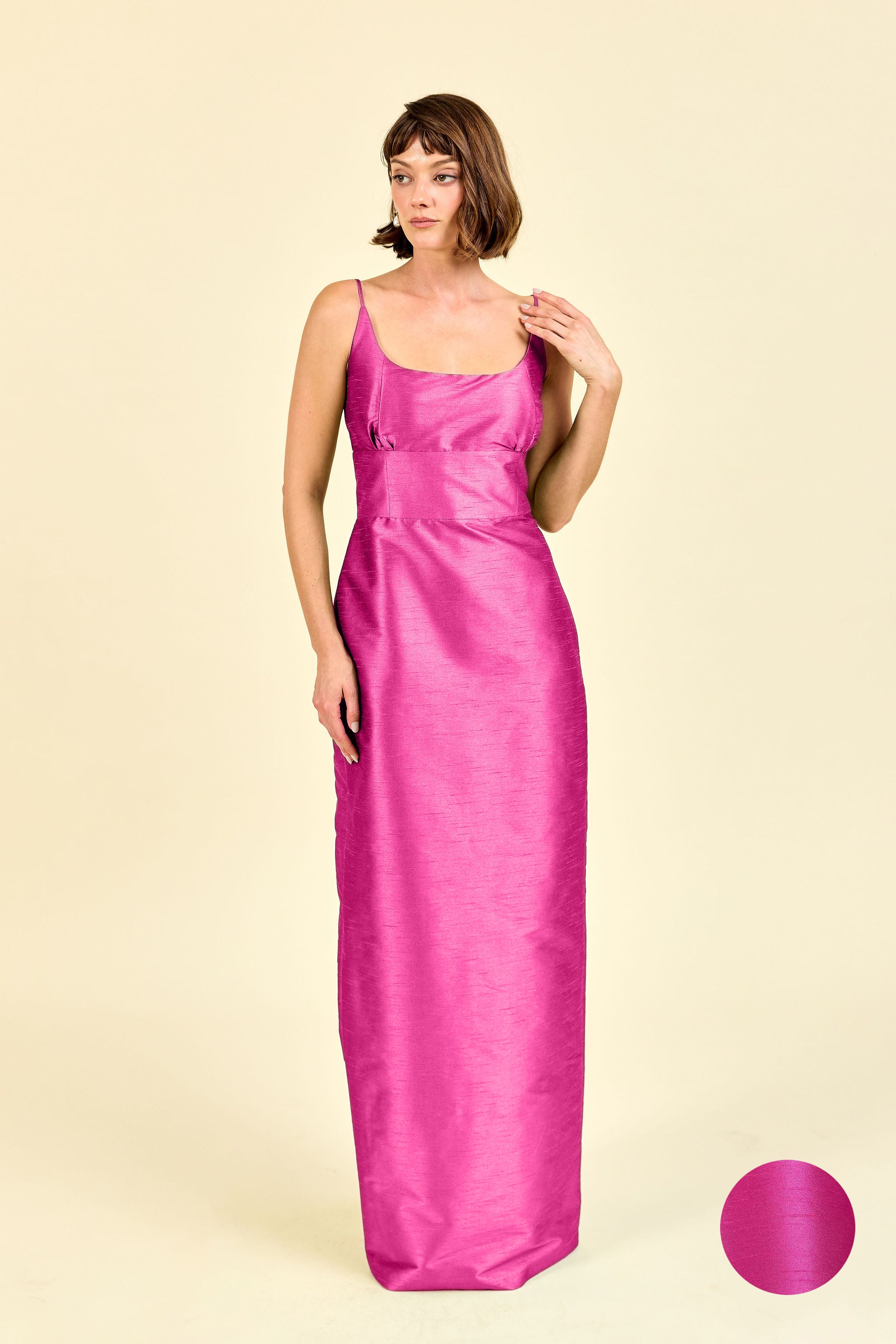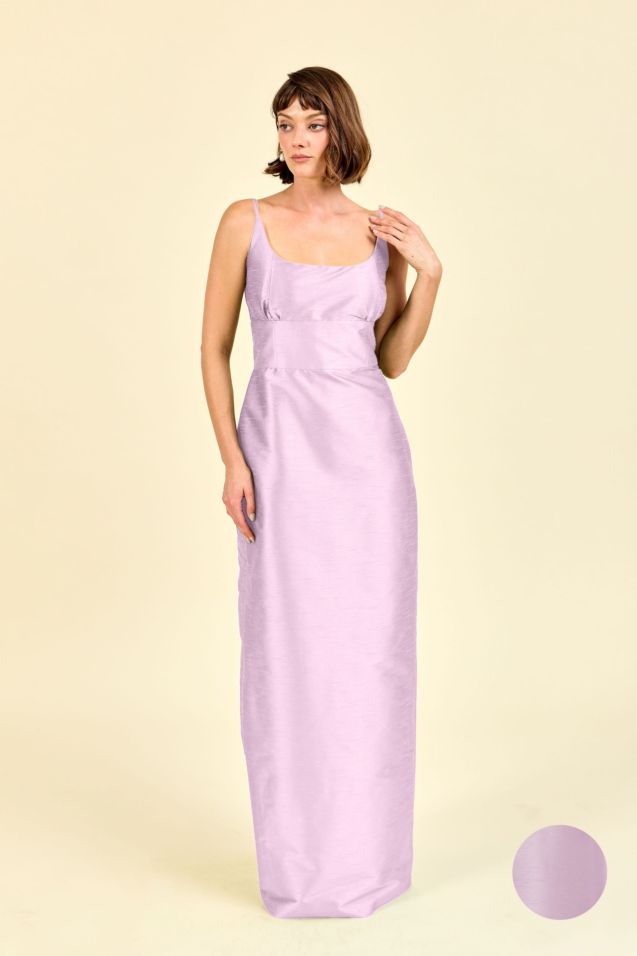 The Jane Dress is a feminine, scoop neck style with delicate adjustable spaghetti straps and a flattering wide waistband. A customer fave.