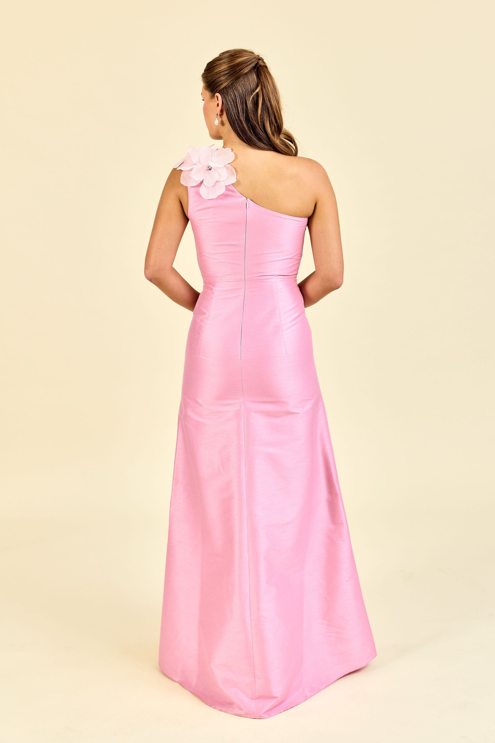 Available in Fuchsia and Carnation Shantung with tonal embroidery.