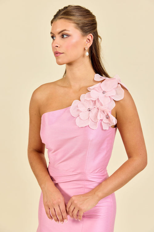 A LulaKate Studio fave. The Kirsten Dress features gorgeous organza flowers with crystal centers, adding the perfect soft & elevated touch to a stunning silhouette.