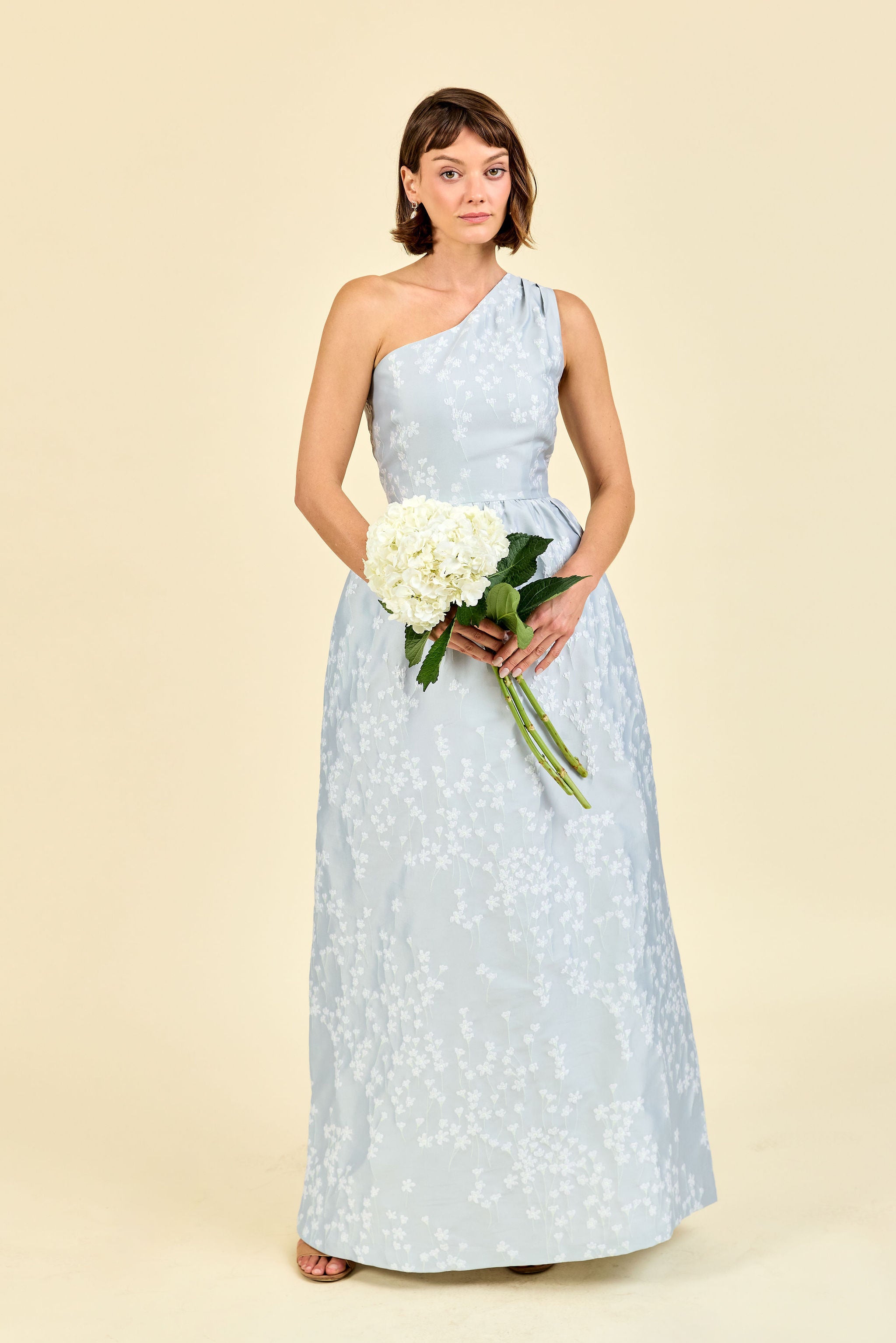The Marissa is a stunning and classic one shoulder dress, featuring tucks at the shoulder and a gentle sweeping neckline.